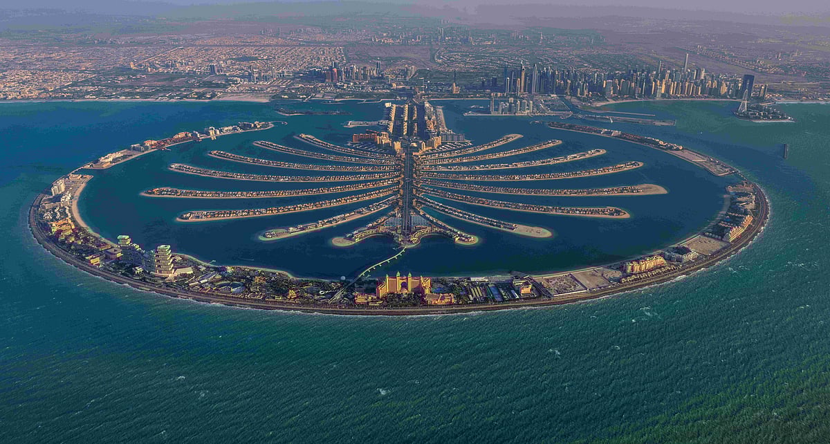 Вид на Пальму Джумейра. В престижных районах, таких как Пальма Джумейра, были заключены сделки, которые не только превзошли предыдущие показатели, но и свидетельствуют о устойчивом доверии к рынку элитных домов Дубая.