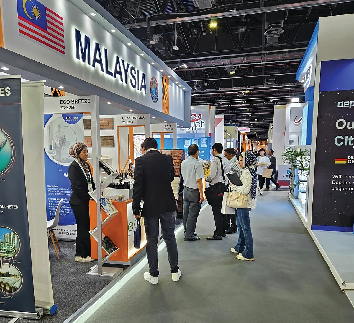 Участие малазийских компаний в этом году включает различные сегменты строительных материалов, включая плитку для пола и стен, облицовку камнем, вентиляторы общего назначения, вентиляторы для вентиляции и вентиляторы HVLS, декоративную облицовку для внутренних помещений и фасадов зданий, кабели и аксессуары для кабелей, передовые системы защиты от термитов, рольставни, стальные двери и стеллажные системы для хранения, кабели и аксессуары для них, готовые изделия и аксессуары для алюминиевой опалубки, а также сантехника для ванных комнат.