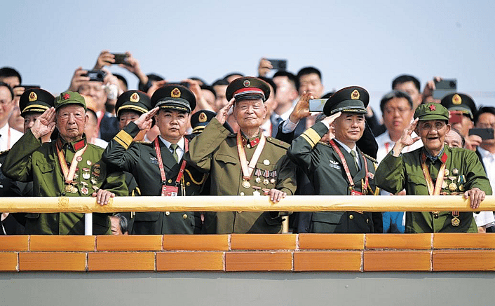 3 сентября в Пекине состоится военный парад, посвященный 80-й годовщине победы китайского народа в войне сопротивления японской агрессии (1931-45) и Мировой антифашистской войне. Ветераны войны и гости отдают честь во время парада. ЧЭНЬ ЕХУА / СИНЬХУА