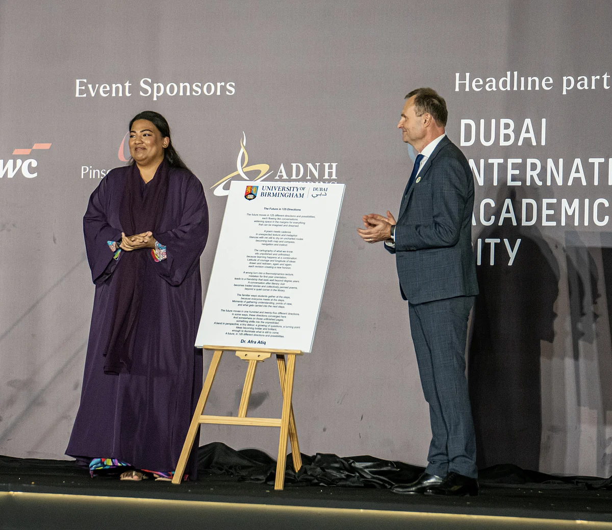 Посетителей ждала насыщенная культурная программа с участием певца и автора песен, студента университета Вона Прэнгли, эмиратской поэтессы Афры Атик и танцевального клуба Университета Бирмингема в Дубае. Интерактивные инсталляции и выставки также демонстрировали новаторские достижения университета за последние 125 лет – от ранних научных открытий до его нынешнего лидерства в области искусственного интеллекта (ИИ), здравоохранения и благополучия, а также устойчивого финансирования в регионе Персидского залива.