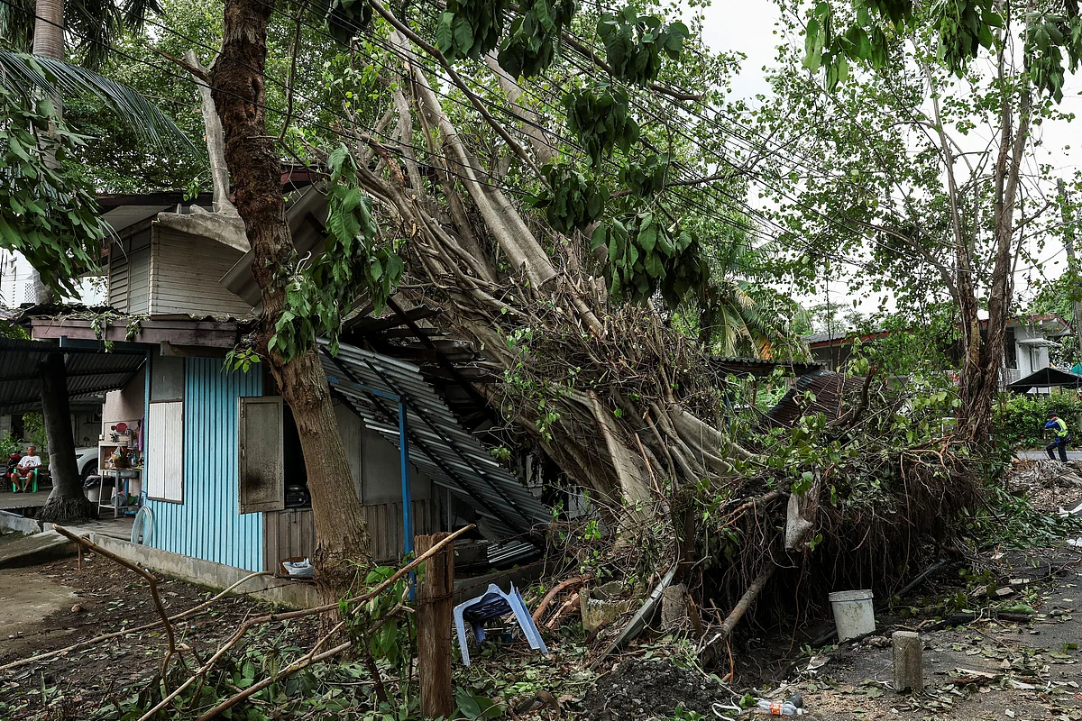 В пятницу в Бангкоке из-за проливного дождя и сильного ветра на крышу дома упало дерево. Фото: Reuters