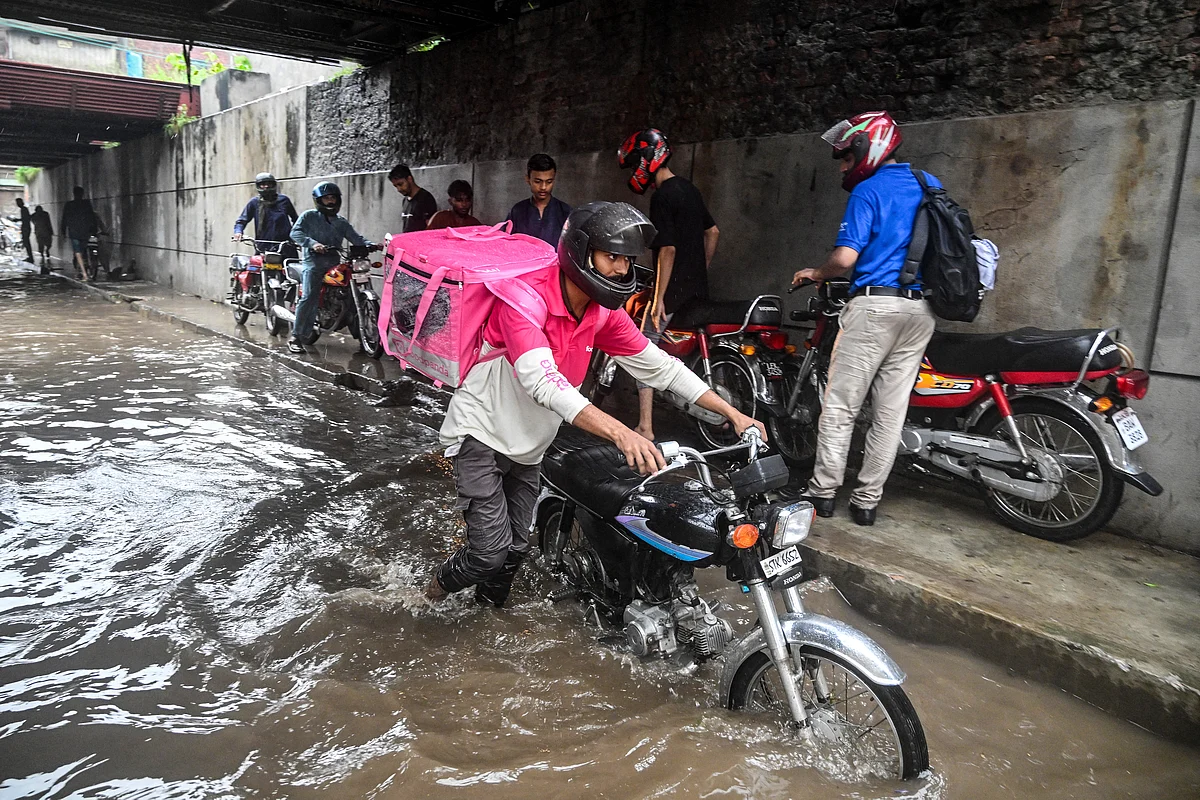 Абдулла Аббас пробирался по затопленным улицам Лахора, изо всех сил толкая свой мотоцикл и доставляя заказ еды вовремя.