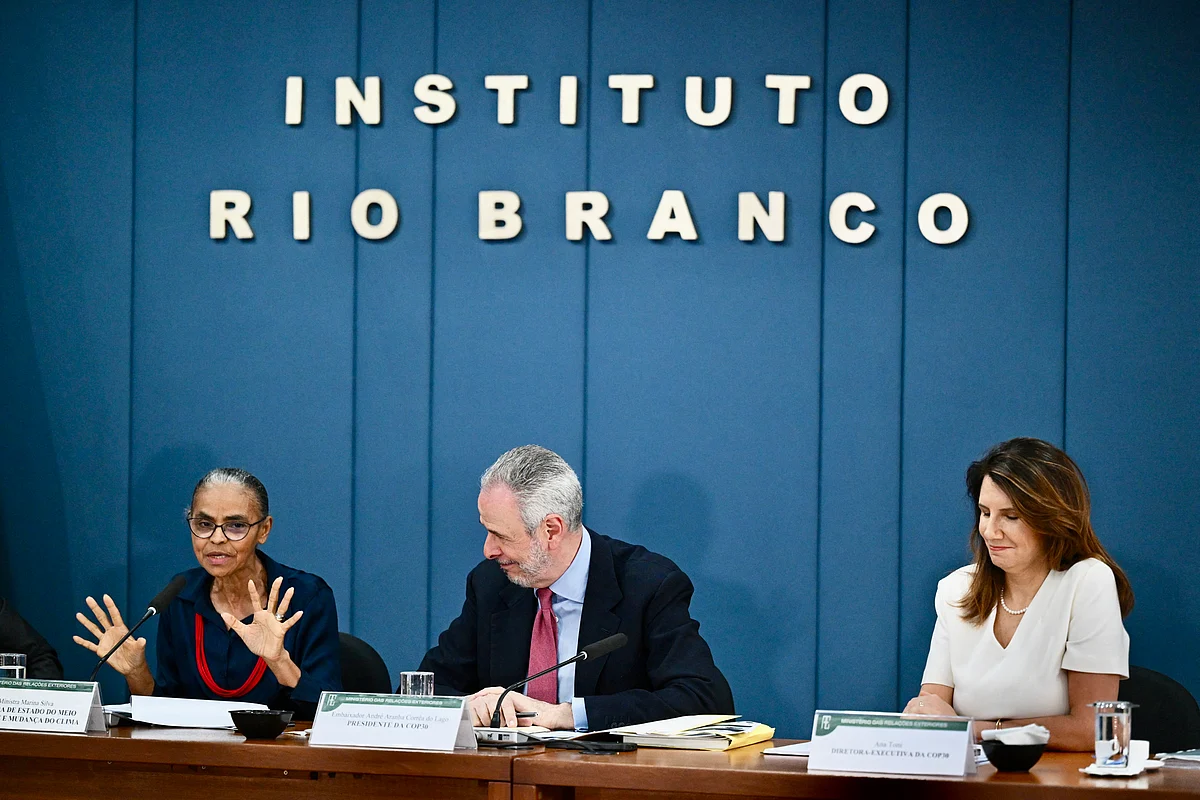 Министр окружающей среды Бразилии Марина Силва (слева) выступает рядом с послом Бразилии Андре Корреа ду Лаго и генеральным директором COP30 из Бразилии Аной Тони во время пресс-конференции в рамках совещания перед COP30, подготовительного мероприятия, на котором собираются министры по климатическим переговорам, в Бразилии, 10 октября 2025 года. — Файл AFP