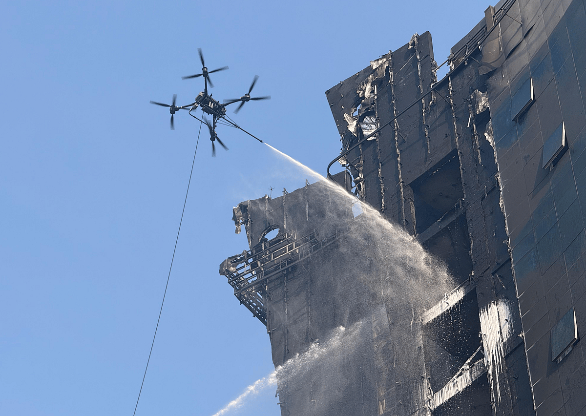 Служба гражданской обороны Дубая задействовала свои передовые беспилотники “Шахин” для оказания помощи в борьбе с пожаром. Разработанные специально для аварийных ситуаций на высотах высотой до 200 метров, беспилотники оснащены 1200-литровым резервуаром для подачи воды и противопожарной пены. Поддержка с воздуха, оказываемая беспилотными летательными аппаратами, позволила пожарным более эффективно локализовать пожар и снизить риск его дальнейшего распространения.