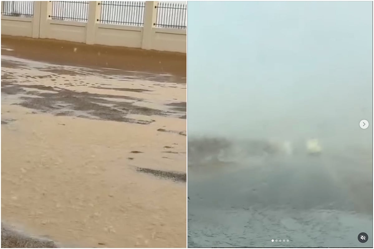 Охотники за дождем из ОАЭ поделились видеозаписями сильного ливня в Аль-Ноуде, на Аль-Бавади-роуд и в корпоративном лагере в городе Аль-Айн.