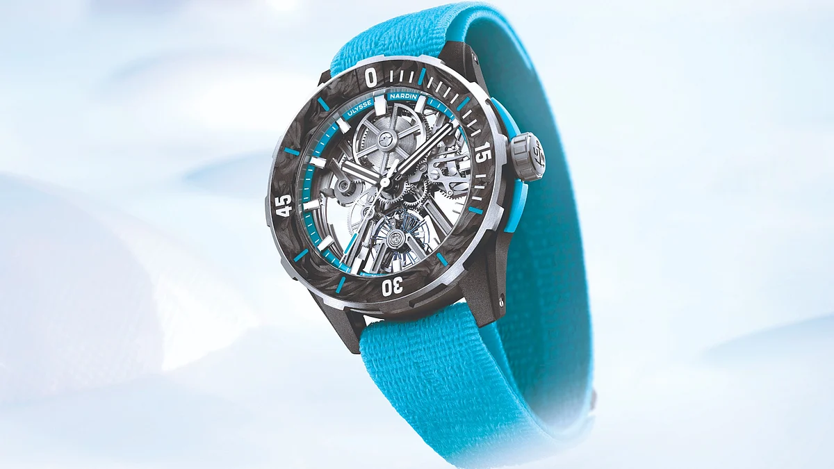 С технической точки зрения эти часы являются настоящим достижением. Они водонепроницаемы на глубине до 200 метров, но при этом удивительно легкие и прочные, благодаря постоянным инновациям Ulysse Nardin в области использования передовых материалов. Корпус диаметром 44 мм выполнен из переработанного титана и нейлоновой фольги – экологически чистого сочетания переработанных рыболовных сетей и переработанного углеродного волокна. Безель CarbonFoil полностью изготовлен из переработанного углерода, что придает изделию тактильное ощущение легкости.