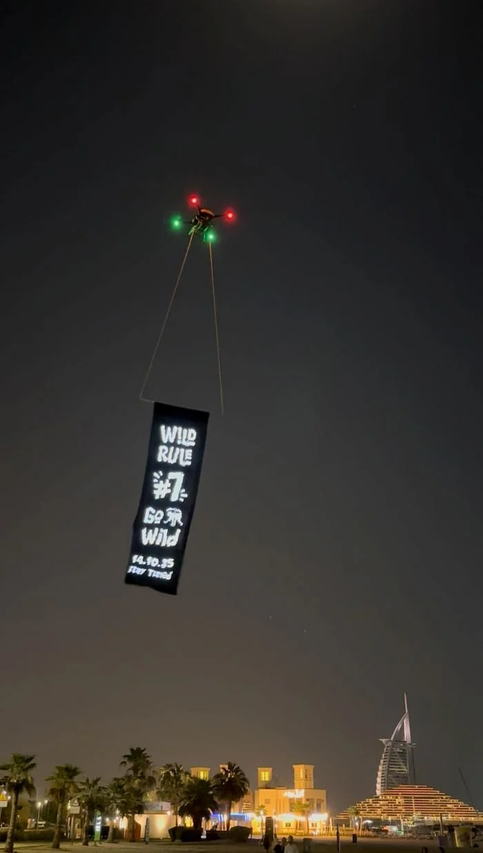 В преддверии открытия над горизонтом Дубая был установлен летающий светодиодный экран, рекламирующий возвращение парка.