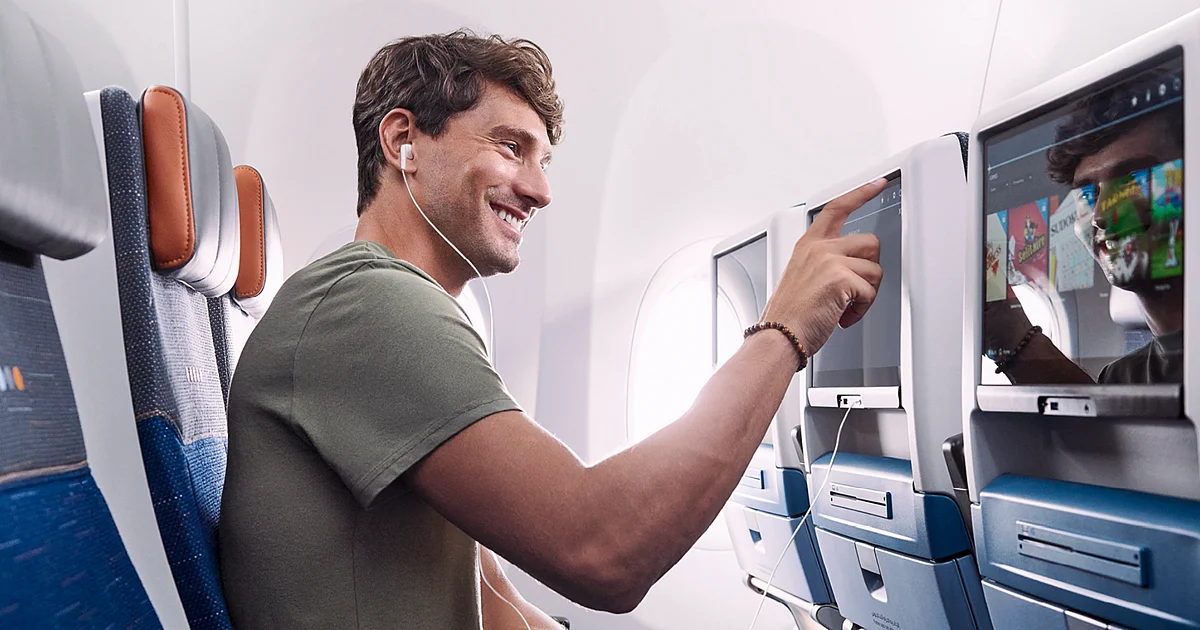 Путешественники также могут ознакомиться с интерактивными играми, электронными журналами, более чем 700 музыкальными альбомами и эпизодами подкастов или узнать больше о пункте назначения с помощью путеводителей и информации о рейсах в режиме реального времени.