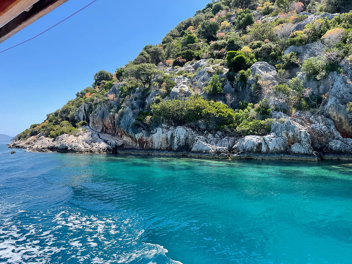 В мои планы не входило совершать пешие прогулки или проезжать на машине по всем городам, но я хотел осмотреть достопримечательности между Анталией и Демре (древней Майрой), изюминкой которых является затонувший город Кекова. Бюджетный рейс SunExpress доставил меня в Анталию, и по прибытии Хузур, мой водитель-гид и бывший археолог, провез меня по шоссе D400, откуда открывались потрясающие виды на густые леса и ослепительно синее море. Эта дорога считается одной из самых красивых в Турции.