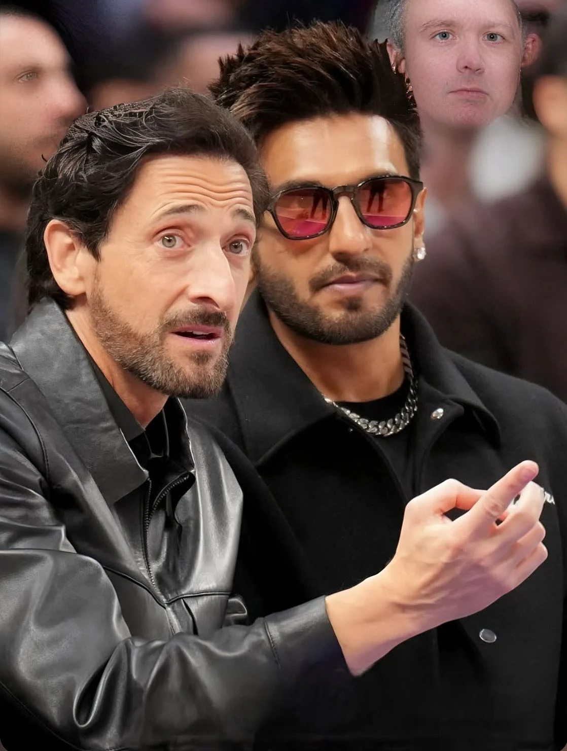 Ранвир, одетый в элегантную черную куртку от Amiri и солнцезащитные очки с красными стеклами, выглядел настоящей иконой стиля, которой он известен. Его энергичность было трудно не заметить, когда он приветствовал игроков, позировал болельщикам и общался с другими знаменитостями. В нескольких видеороликах с того вечера было видно, как он оживленно беседует с Эдриеном Броуди и делится радостным моментом со звездой “Нью-Йорк Никс” Карлом-Энтони Таунсом, который тепло обнимает его.