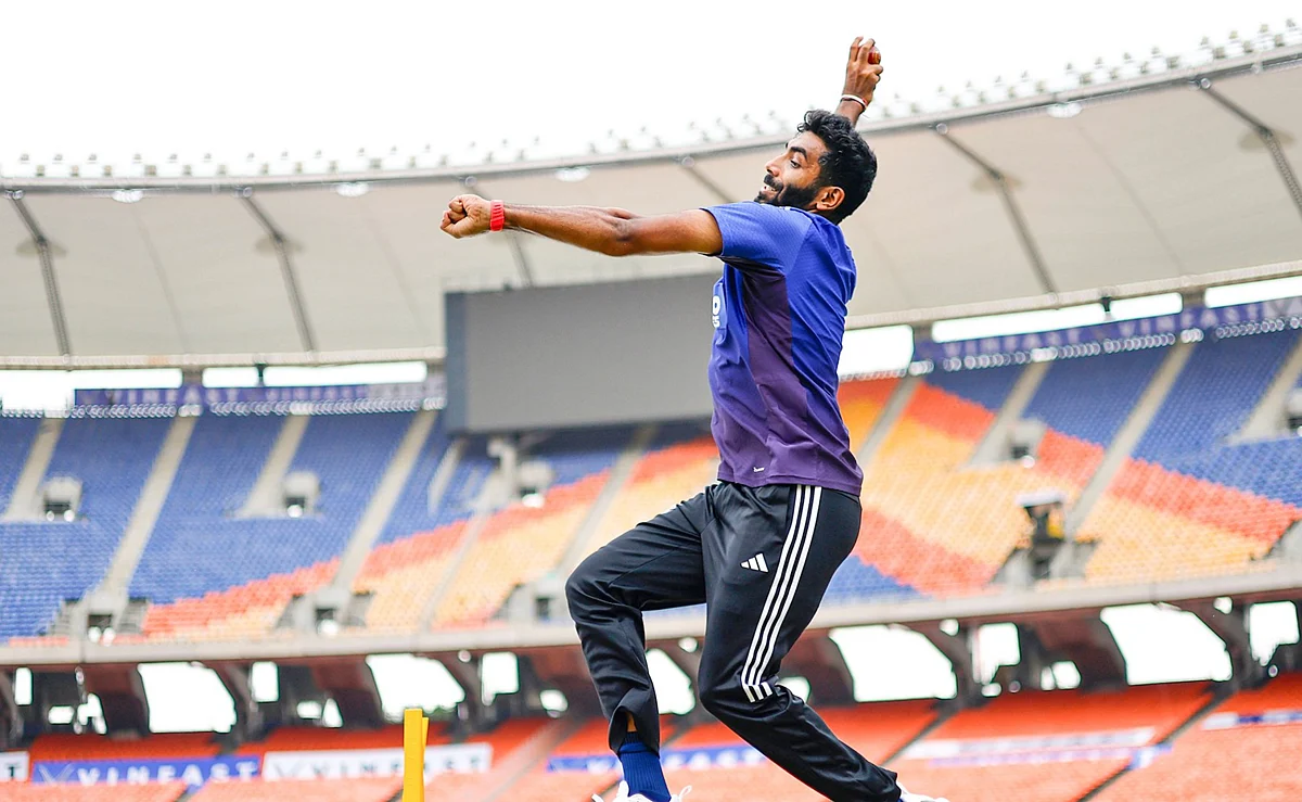Джасприт Бумра из Индии играет в шары во время тренировки.  Картинка предоставлена X/BCCI