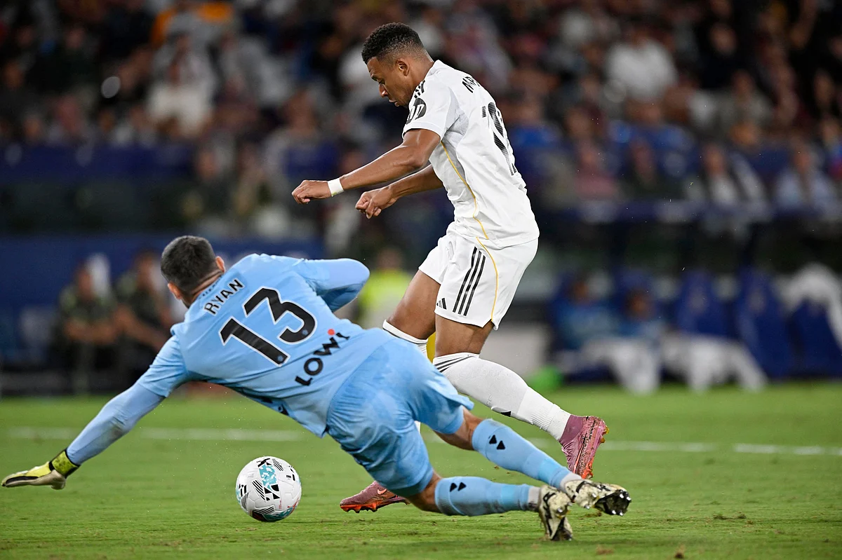 Голкипер “Валенсии” Мэтью Райан сделал хороший сейв, отразив удар Дениса Винисиуса, а Мастантуоно после рикошета попал в перекладину, когда “Лос Бланкос” угрожали в дебюте матча.