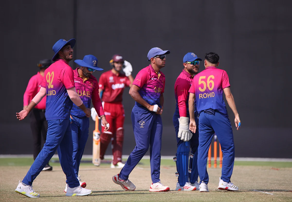 В первом матче группы А сборная ОАЭ обыграла команду Катара со счетом 118:8 благодаря впечатляющим выступлениям в боулинге Мухаммада Рохида (4-1-13-2) и Захида Али (3-0-27-2).