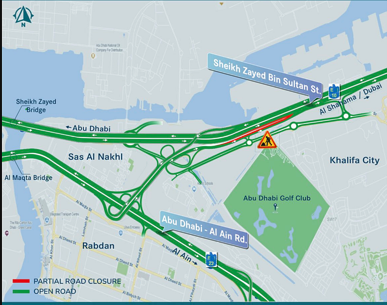 Власти Абу-Даби проинформировали жителей о частичном закрытии улицы Шейха Зайда бен Султана (E10) с субботы, 27 сентября.