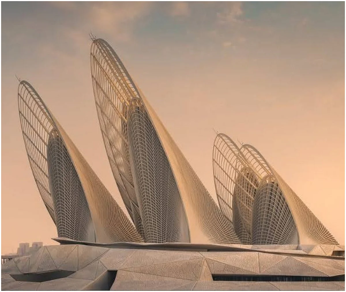 Над музеем возвышаются пять стальных конструкций, выполненных в виде крыла летящего сокола, а соколиная охота считается неотъемлемой частью культуры Эмиратов.