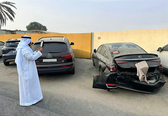 Чиновник осматривает брошенный автомобиль. Фото: Муниципалитет Дубая
