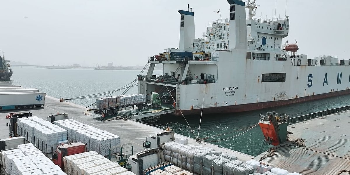 Судно перевозит 2500 тонн продовольствия, жилья и медикаментов во исполнение указаний президента Его Высочества шейха Мохаммеда бен Заида Аль Нахайяна.
