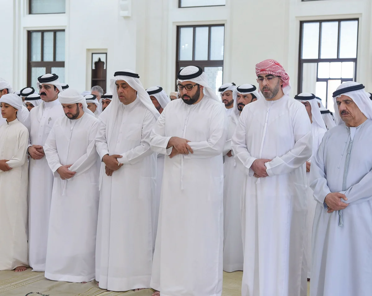 Шейх Рашид бин Сауд бин Рашид Аль Муалла, наследный принц Умм-эль-Кувейна, и шейх Ахмед бин Сауд бин Рашид Аль Муалла, заместитель правителя Умм-эль-Кувейна, совершили заупокойную молитву по покойному шейху Ибрагиму бин Ахмеду бин Хамаду Аль Муалле.