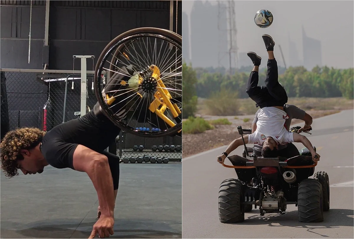 В ОАЭ Абдулла Аль-Хаттави катался на квадроцикле, в то время как Аммар Альхудаири балансировал на голове и жонглировал футбольными ударами подошвами, выполнив 23 повторения и побив рекорд по количеству футбольных ударов подошвами на движущемся квадроцикле за 30 секунд (команда из двух человек).